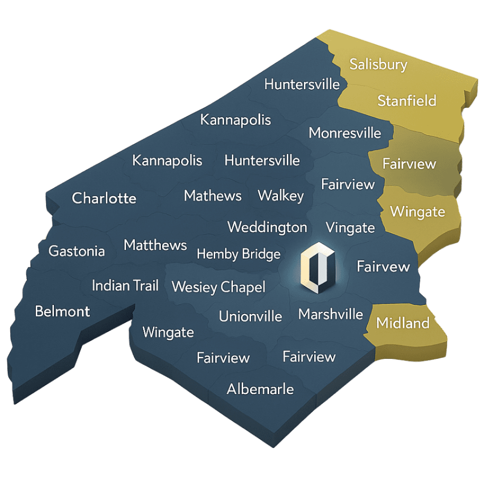 Charlotte; Concord; Gastonia; Matthews; Mint Hill; Indian Trail; Stallings; Waxhaw; Weddington; Wingate; Wesley Chapel; Unionville; Mineral Springs; Lake Park; Hemby Bridge; Marshville; Fairview; Midland; Stanfield; Kannapolis; Mooresville; Salisbury; Huntersville; Cornelius; Davidson; Mount Holly; Belmont; Shelby; Albemarle